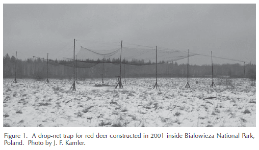 Jedrzejewski, W. and J.F. Kamler. 2004. From the Field: modified drop-net for capturing ungulates. Wildlife Society Bulletin 32(4): 1305-1308.