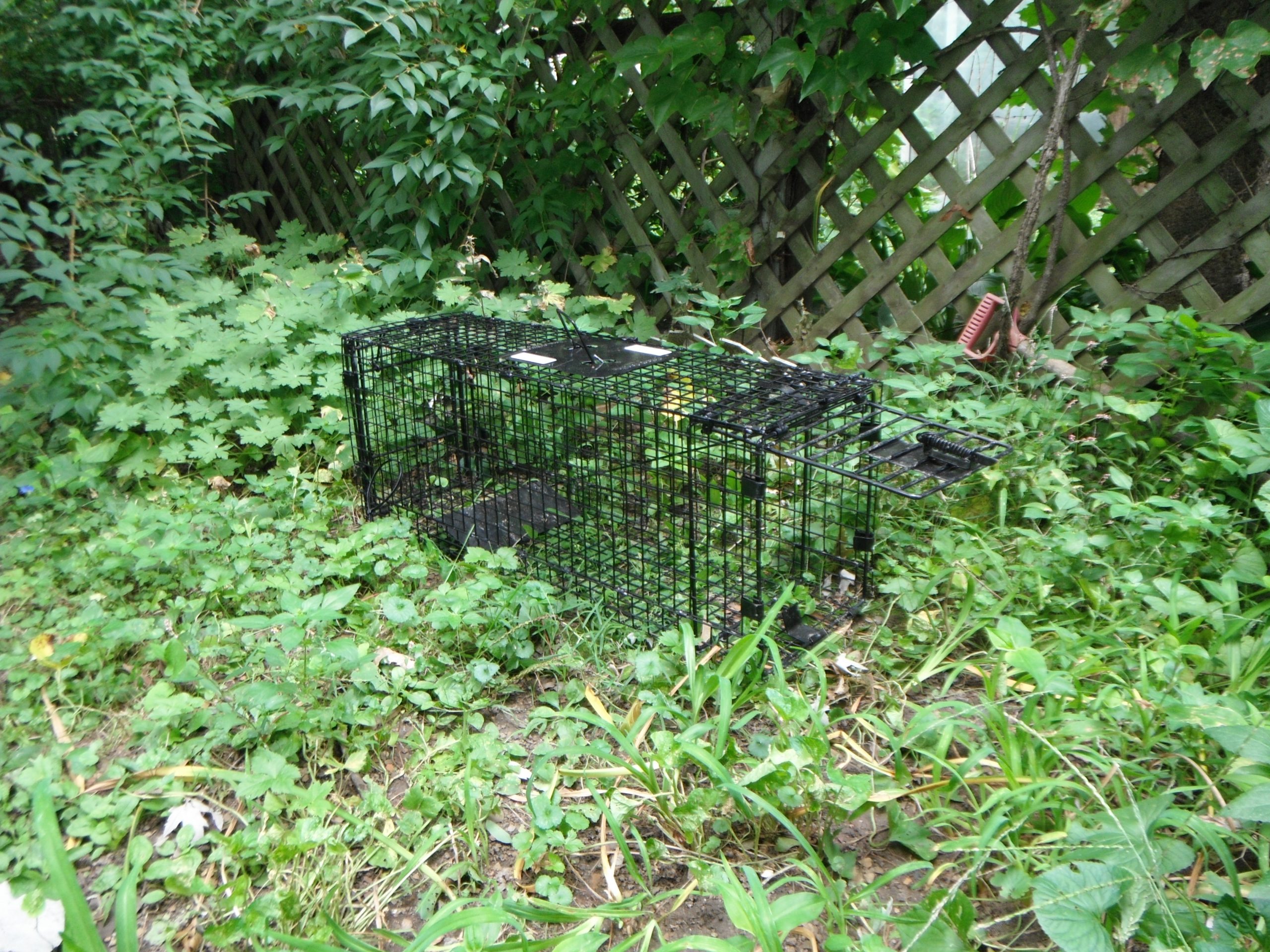 - If it’s wet out, cover the trap with a tarp, heavy trash bag or shower curtain.